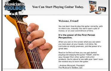 •the musician's toolbox spent 2 years developing the content you're about to download. We researched countless other products and asked ourselves, what's great about this? what's missing? how can we make this easier? no one has worked so hard on behalf of the beginning guitar player. And you'll see why we can say that in just a second, but first, let me introduce our product...